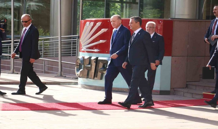 Cumhurbaşkanı Recep Tayyip Erdoğan, CHP Genel Başkanı Özgür Özel ile Cumhuriyet Halk Partisi başkanlık makamında görüştü. Görüşme yaklaşık 1 saat 30 dakika sürdü. Özel, Cumhurbaşkanı Erdoğan’a aracına kadar eşlik etti. Cumhurbaşkanı Erdoğan’a AK Parti Genel Başkanvekili Mustafa Elitaş, CHP Genel Başkanı Özgür Özel’e ise CHP İstanbul Milletvekili ve eski büyükelçi Namık Tan eşlik etti.