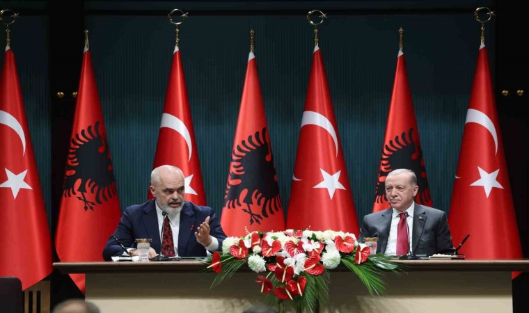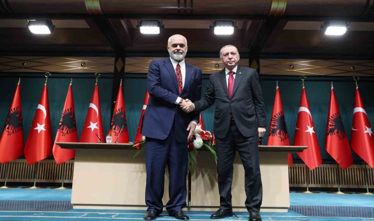 Cumhurbaşkanı Recep Tayyip Erdoğan, Arnavutluk Başbakanı Edi Rama ile beraber "Türkiye-Arnavutluk Yüksek Düzeyli İşbirliği Konseyi Birinci Toplantısı"na başkanlık etti. Ardından Arnavutluk Başbakanı Rama ile anlaşmaların imza törenine katılan Cumhurbaşkanı Erdoğan, Edi Rama ile gerçekleştirdiği ortak basın toplantısında konuştu. Cumhurbaşkanı Erdoğan, Başbakan Rama ve heyetini yüksek düzeyli iş birliği konseyinin ilk toplantısı vesilesiyle Ankara’da misafir etmekten büyük bir memnuniyet duyduğunu belirterek, geçtiğimiz sene Türkiye ve Arnavutluk arasındaki diplomatik ilişkilerin tesisinin 100’üncü yıl dönümünün idrak edildiğini hatırlattı. Arnavutluk ile çok yönlü işbirliğinin 2021 yılında Başbakan Rama ile Ankara’da ilan ettikleri stratejik ortaklık temelinde gelişmeye devam ettiğini ifade eden Cumhurbaşkanı Erdoğan, ”Bugün icra ettiğimiz konseyimizin ilk toplantısıyla münasebetlerimizi daha ileri seviyelere taşıma kararlılığımızı bir kez daha teyit ettik. Türkiye’nin Arnavutluk’un kalkınmasına verdiği önemi, Arnavutluk halkının refahının artırılmasına yönelik desteğini bir kez daha vurguladım. İmzalanan anlaşmalarla iş birliğimizin ahdi zeminini daha da güçlendirdik. Ticaret hacmimizi 1 milyar dolar seviyesine çıkardık” diye konuştu.