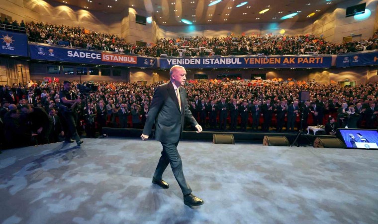 Türkiye’nin 81 vilayetindeki tüm teşkilatlarımıza seslenen Cumhurbaşkanı Erdoğan, “Bu vesileyle buradan tüm İstanbul teşkilatlarımıza, Türkiye’nin 81 vilayetindeki tüm teşkilatlarımıza seslenmek istiyorum. Kendi yönetimimizdeki belediyelerde tekrar göreve talip olurken de, muhalefetin elindeki yerleri gerçek belediyecilikle tanıştırmak isterken de bize düşen görev şudur; İşimizi her zaman ve her yerde düzgün bir şekilde yapmaktır. Programlarımızla, projelerimizle, icraatımızla göz doldurmaktır. İnsani ve ahlaki duruşumuzla tevazumuzla, samimiyetimizle milletimizin kalbini kazanmaktır. Gece gündüz çalışarak hiçbir hususta ve hiçbir alanda boşluk bırakmamaktır. Şayet biz düzgün çalışır, mesuliyetimizin hakkını verirsek, şayet biz hizmetine talip olduğumuz insanların gönlüne girersek, şayet biz polemikle nefes harcamayıp milletimizle ufkumuzu artırırsak yani biz doğru olursak eğri zaten belasını bulacaktır” şeklinde konuştu.