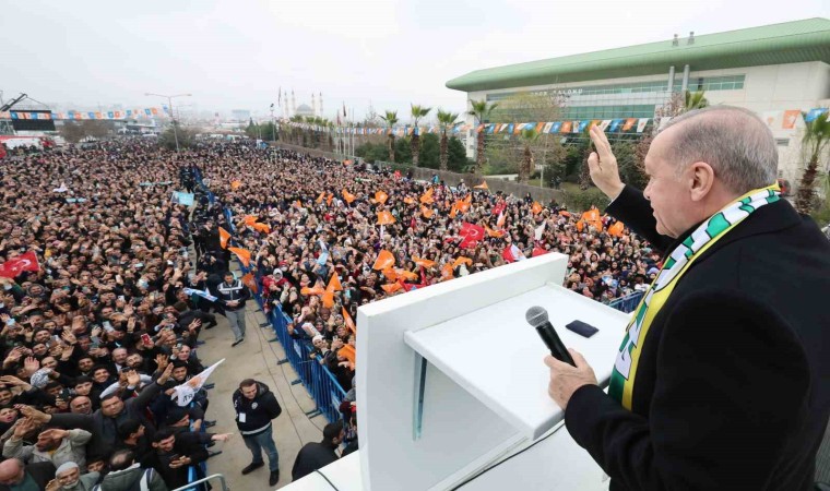 Cumhurbaşkanı Erdoğan, “Allah’ın izniyle yıl sonuna kadar deprem illerimizde 200 bin konutun teslimiyatını yapacağız. Evliyalar şehri Şanlıurfa kardeşliğin kıymetini çok iyi bilir. Dimdik ayaktayız, ayakta olacağız. Tarih boyunca büyük medeniyetlere, insanlığa hizmet etmiş Urfa bölgesinin kalbimizde büyük önemi var. Ülkemize kazandırdığımız eser ve hizmetlerden Şanlıurfa da payını aldı. Şanlıurfa; tarihi, kültürü, zengin insan kaynağı potansiyeli hayaline kavuşturmak kolay olmuyor. Hep beraber çok çalışmamız gerekiyor. Sadece çalışmak da yetmiyor. Birlik, beraberlik ve kardeşliğimizi sıkı tutmamız aramıza kimseyi sokmamamız gerekiyor. Maddi ve manevi değerleriyle mübarek olan bu şehir aynı zamanda içinde pek çok zorluğu barındıran bir yapıya sahiptir. Sizler şahitsiniz, bizler sizlerin iradesinden asla taviz vermeden hep şehrin daha ileriye gitmesi için ne gerekiyorsa onu yapmaya gayret gösterdik. Devlet yatırımlarını planlarken de, milletvekili, belediye başkan adaylarımızı belirlerken de aynı anlayışla hareket ettik. Şanlıurfa’nın isminin arkasına saklanıp Şanlıurfalıların iradesini istismar edip kendi ajandaları kendi gündemleri, kendi bireysel hesapları peşinden koşanlardan asla olmadık. Eksiklerimiz, hatalarımız çıkabilir. Ama şehrimize kazandırdıklarımızı kimse inkar edemez. Şanlıurfa Büyükşehir Belediye Başkan adaylarımızı da, ilçe belediye başkan adaylarımızı da bu şuurla belirledik. Şanlıurfa’ya katkı verebilecek isimlerle 31 Mart’ta sizlerin huzuruna çıkmaya çalıştık. Artık hepimize düşen cumhurbaşkanıyla, bakanlarıyla, teşkilatıyla el ele vererek önce adaylarımızın seçilmesini, ardından da onlar vasıtasıyla şehrimize en güzel hizmetlerin getirilmesini sağlamaktır” dedi.