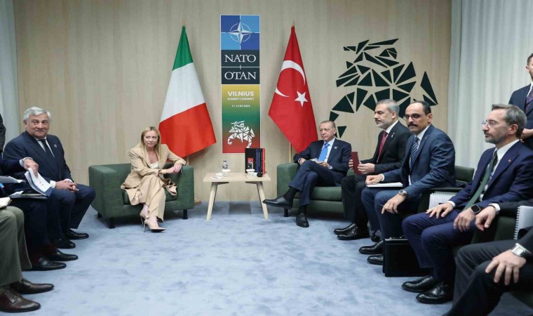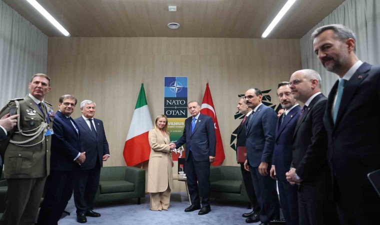Cumhurbaşkanı Recep Tayyip Erdoğan, Litvanya’nın başkenti Vilnius’ta düzenlenen NATO Devlet ve Hükümet Başkanları Zirvesi kapsamında ikili görüşmelerine devam ediyor. Fransa Cumhurbaşkanı Emmanuel Macron ve İngiltere Başbakanı Rishi Sunak ile görüşen Erdoğan, Kuzey Atlantik Konseyi Toplantısı’nın ardından ise Kanada Başbakanı Justin Trudeau ile bir araya geldi. Cumhurbaşkanı Erdoğan, son olarak İtalya Başbakanı Giorgia Meloni ile görüşme gerçekleştirdi.