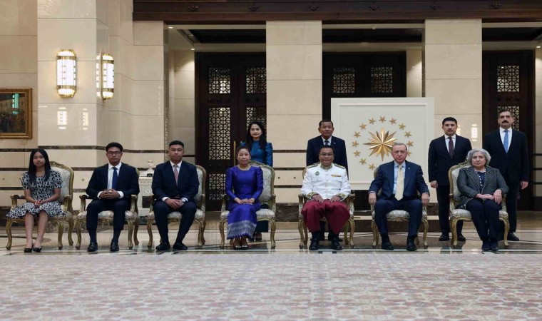 Cumhurbaşkanlığı Külliyesi’ndeki kabulde Kamboçya Büyükelçisi Chea Sok, Cumhurbaşkanı Erdoğan’a yöresel kıyafetlerle güven mektubu sundu. Chea Sok’un ailesi ve bazı büyükelçilik mensuplarını Cumhurbaşkanı Erdoğan’a takdiminin ardından hatıra fotoğrafı çektirildi.