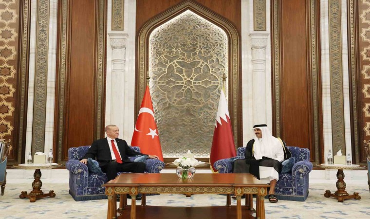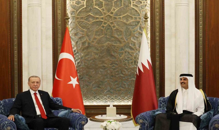 Cumhurbaşkanı Recep Tayyip Erdoğan, Körfez ülkeleri turunun ikinci durağı Katar’ın başkenti Doha’da Katar Emiri Şeyh Tamim bin Hamad Al Thani ile bir araya geldi. Görüşmede, Katar Emiri Al Thani, Cumhurbaşkanı Erdoğan’a Katar’da düzenlenen FIFA Dünya Kupası Finali’nde Arjantinli dünyaca ünlü futbolcu Lionel Messi’nin imzaladığı topu gösterdi.