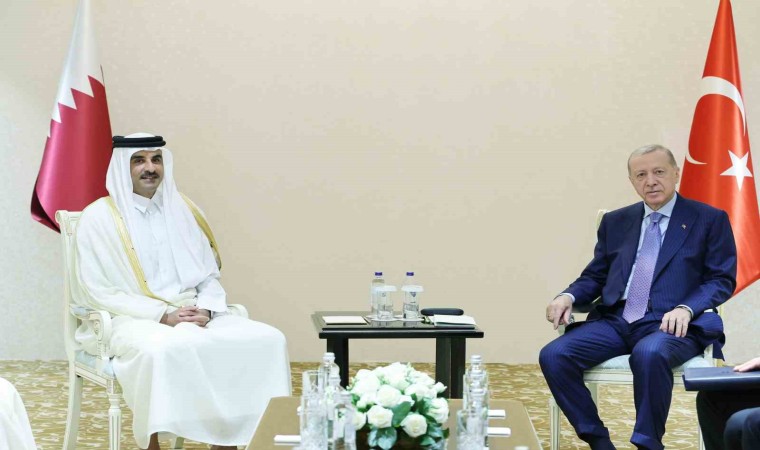Cumhurbaşkanı Recep Tayyip Erdoğan, Kazakistan’ın başkenti Astana’da Katar Emiri Şeyh Tamim bin Hamad Al Thani ile bir araya geldi.