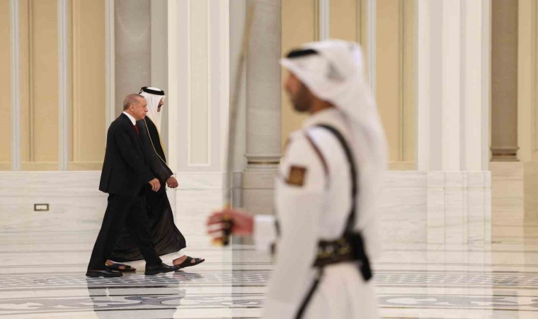 Cumhurbaşkanı Recep Tayyip Erdoğan, Körfez ülkeleri turunun ikinci durağı olan Katar’ın başkenti Doha’da Katar Emiri Şeyh Tamim bin Hamad Al Thani tarafından Lusail Sarayı’nda resmi törenle karşılandı. İki ülke marşlarının okunduğu törende Erdoğan, karşılama kıtasını selamladı. Törenin ardından Erdoğan ve Al Thani baş başa gerçekleştirecekleri görüşmenin ardından heyetlerarası görüşmeye başkanlık edecek.
