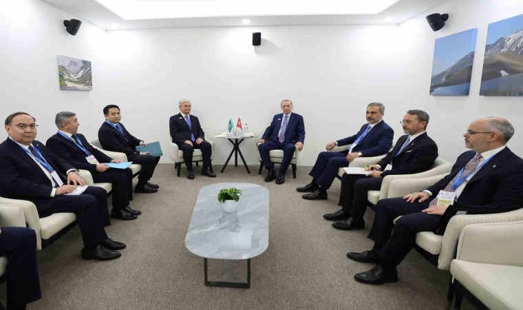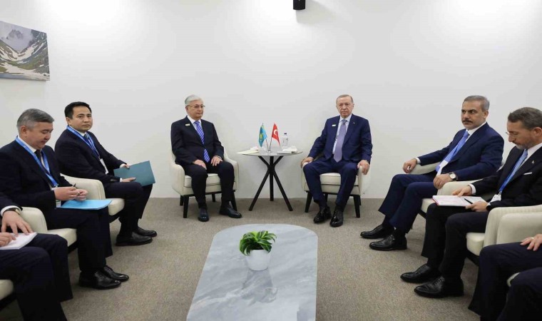 Cumhurbaşkanı Recep Tayyip Erdoğan, Birleşmiş Milletler (BM) İklim Değişikliği Çerçeve Sözleşmesi 29. Taraflar Konferansı (COP29) Dünya Liderleri İklim Zirvesi dolayısıyla bulunduğu Azerbaycan’ın başkenti Bakü’de ikili temaslarını sürdürüyor. Cumhurbaşkanı Erdoğan, Kazakistan Cumhurbaşkanı Kasım Cömert Tokayev ile görüşme gerçekleştirdi. Görüşmede Dışişleri Bakanı Hakan Fidan, Cumhurbaşkanlığı İletişim Başkanı Fahrettin Altun, Cumhurbaşkanı Dış Politika ve Güvenlik Başdanışmanı Akif Çağatay Kılıç da hazır bulundu.