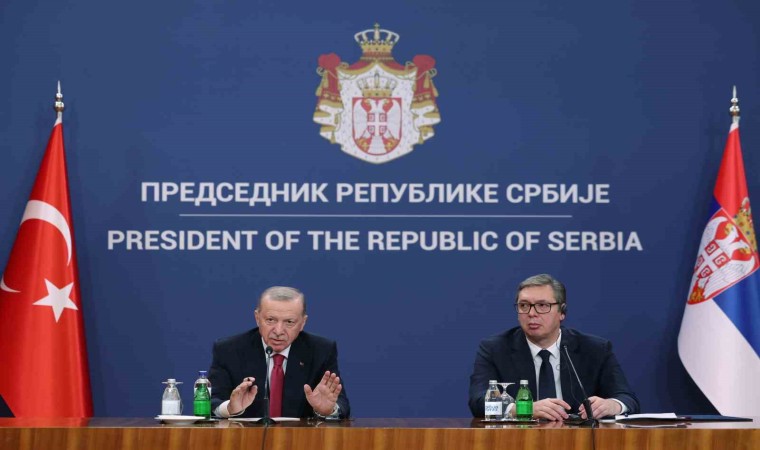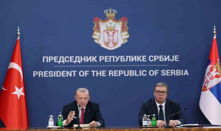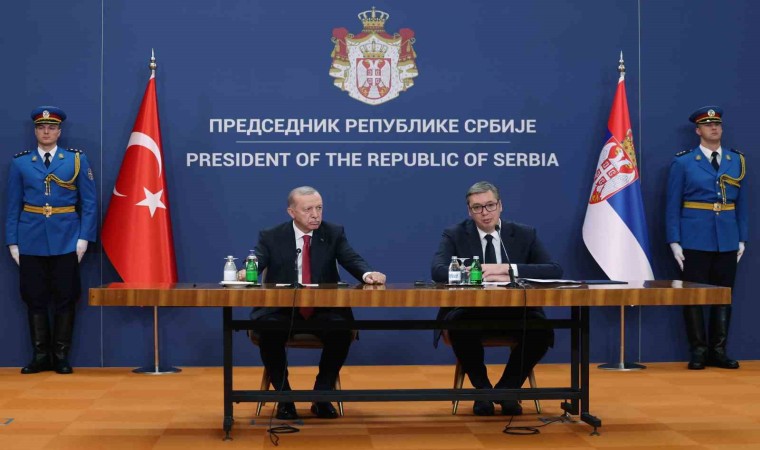Cumhurbaşkanı Recep Tayyip Erdoğan, iki günlük resmi bir ziyaret çerçevesinde Sırbistan’ın başkenti Belgrad’da ikili görüşme gerçekleştirdiği Sırbistan Cumhurbaşkanı Aleksadar Vucic ile ortak basın toplantısı düzenledi. Sırbistan Cumhurbaşkanı Vucic ile baş başa görüşme ve heyetler arası görüşmede iki ülke arasındaki ilişkileri kapsamlı bir şekilde ele aldıklarını ifade eden Erdoğan, ayrıca Balkanlar, Orta Doğu ve küresel meseleleri de istişare ettiklerini belirtti. Türkiye ve Sırbistan ilişkilerde adeta bir “altın çağ” yaşandığını ifade eden Erdoğan, Türkiye’nin geçtiğimiz dönemde Türkiye’nin Belgrad Büyükelçiliği’ne ilave olarak 2021’de Yeni Pazar Başkonsolosluk ve Niş kentlerinde konsolosluk açtığını hatırlattı.