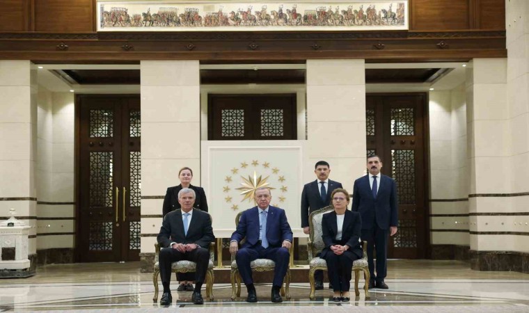 Cumhurbaşkanlığı Külliyesi’ndeki kabulde Lüksemburg Büyükelçisi Georges Faber, Cumhurbaşkanı Erdoğan’a güven mektubu sundu. Faber’in bazı büyükelçilik mensuplarını Cumhurbaşkanı Erdoğan’a takdiminin ardından hatıra fotoğrafı çektirildi.