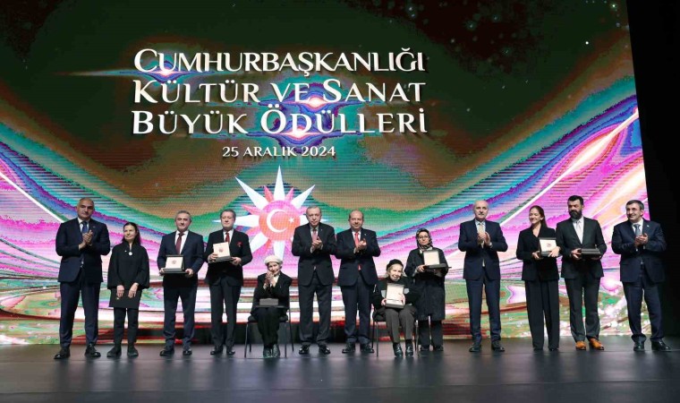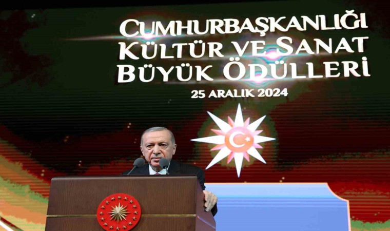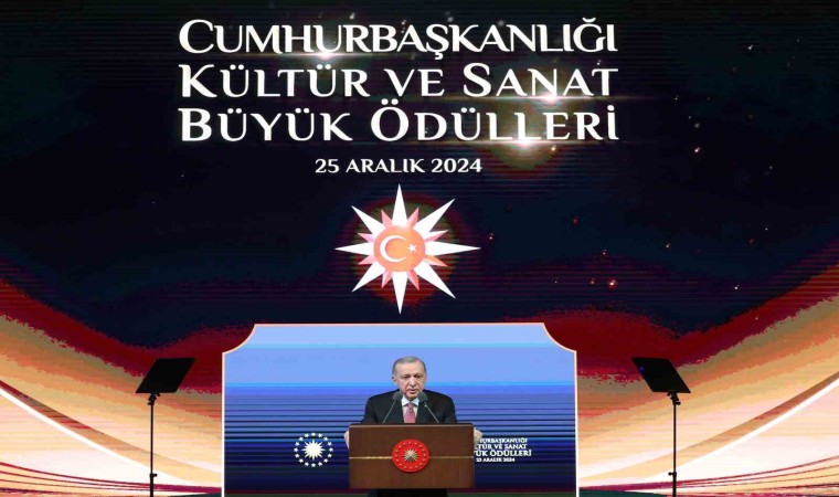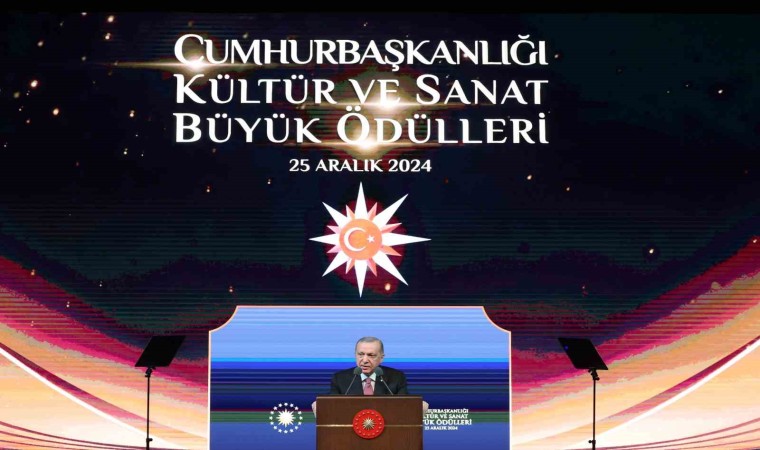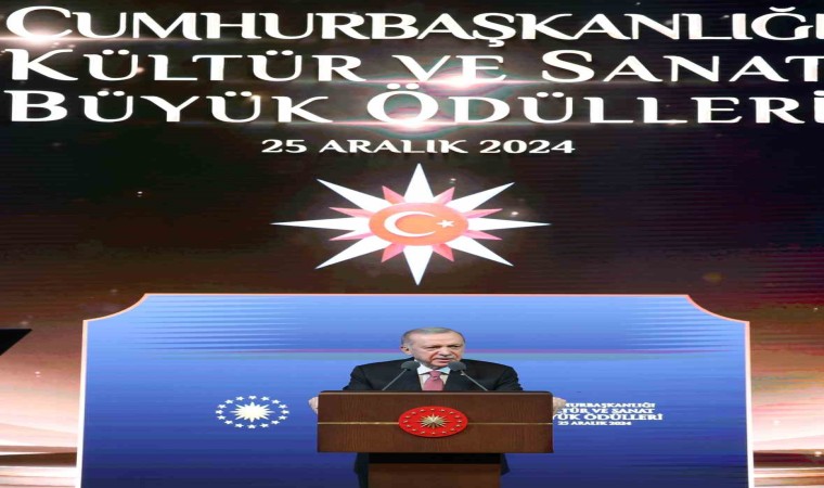 Cumhurbaşkanı Recep Tayyip Erdoğan, Cumhurbaşkanlığı Kültür ve Sanat Büyük Ödülleri Töreni’nde konuştu. Ödüllerini tebliğ edeceği bilim ve kültür insanları, sanat ve zanaat erbapları, fikir ve edebiyat zatları ile temsilcilerini tebrik eden Erdoğan, "Eserleriyle asırlara aşıp gelen medeniyet nehrimizin sanat ve kültür kollarını besleyen ödül sahiplerimize bundan sonraki çalışmalarında Mevla’dan başarılar diliyorum. Kılı kırk yaran titiz ve kapsamlı bir değerlendirme süreci ile ödül sahiplerini belirleyen seçici kurul üyelerimize de şükranlarımı sunuyorum" dedi.