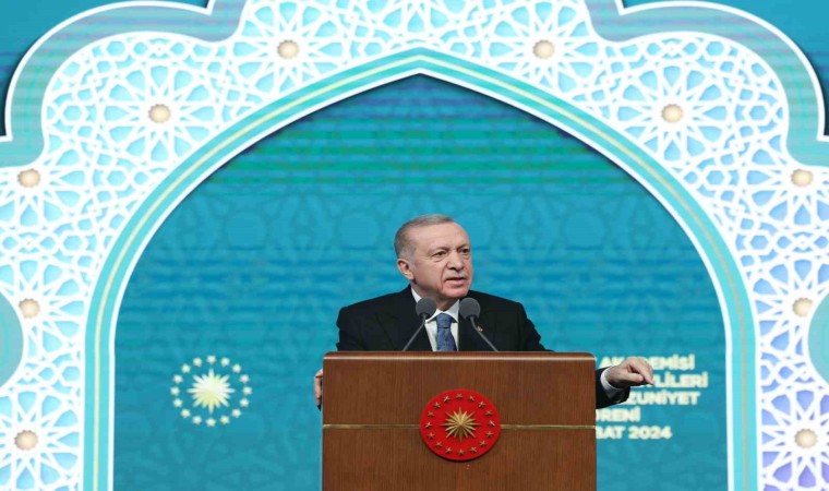 İlk olarak 2012 yılında hukuki altyapısını oluşturmaya başladıkları Diyanet Akademisini 10 yılı bulan titiz ve yoğun çalışmaların ardından 2022 yılında hayata geçirdiklerini aktaran Cumhurbaşkanı Erdoğan, akademinin kurulmasıyla birlikle Diyanet camiasının meslek öncesi eğitim ve mesleki eğitim noktasında son derece mücehhez bir yapıya kavuştuğunu belirtti. Erdoğan, ”Kuruluş sürecinde mevzuat alanındaki eksikler de giderildi. Müezzin-kayyım, imam-hatip, Kur’an kursu öğreticisi ve vaiz olarak görev yapacaklar için 6 ay ile 3 yıl arasında meslek öncesi eğitim mecburiyeti getirildi. 1976 yılından beri hizmet içi eğitim şartlarında üç yıla kadar devam eden ihtisas ve kıraat eğitimleri, müstakil ve yasal bir çerçeveye oturtuldu. Diyanet İşleri Başkanlığımızın merkez ve taşra teşkilatlarında yapılan her tür ve düzeydeki eğitimleri, tek çatı altında topladık. Böylece verilen din hizmetlerinin niteliğini daha da arttıracak, Diyanet mensuplarımızın mesleki donanımını tahkim edecek. Sadece kendi insanımıza değil, yurtdışında yaşayan vatandaşlarımıza ve kardeş halklara da çok daha iyi hizmet götürülmesini sağlayacak. Hâsılı; Diyanetimizin kurumsal, beşeri ve ilmi kapasitesini her alanda ileriye taşıyacak kritik bir kurumu Başkanlığımızın hizmetine sunmuş olduk” dedi.
