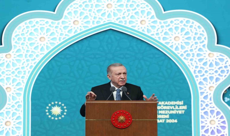 Mezunların her birine atanacakları yeni görev yerlerinde başarılar dileyen Erdoğan, ”Mevla işlerini kolaylaştırsın, vazifelerini bereketli kılsın, ecirlerini artırsın. Aynı şekilde aday din görevlilerimizi en güzel şekilde yetiştiren saygıdeğer hocalarımıza da buradan sahsım, milletim adına teşekkür ediyorum. Yine sizlerin şahsında, yurt içinde ve yurt dışında özveriyle görev yapan bütün Diyanet mensuplarımıza, din görevlilerimize vazifelerinde kolaylıklar diliyorum. Ebediyete irtihal eden hocalarımıza ve büyüklerimize Allah’tan rahmet niyaz ediyorum. Rabbim bizleri âlimlerimizin, ariflerimizin, gönül ve hikmet erlerinin yolundan ayırmasın diyorum” diye konuştu.