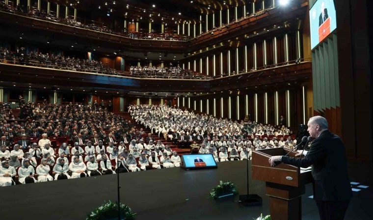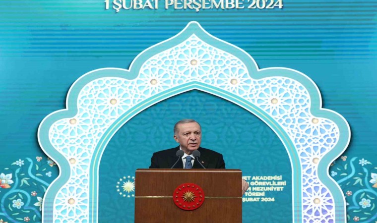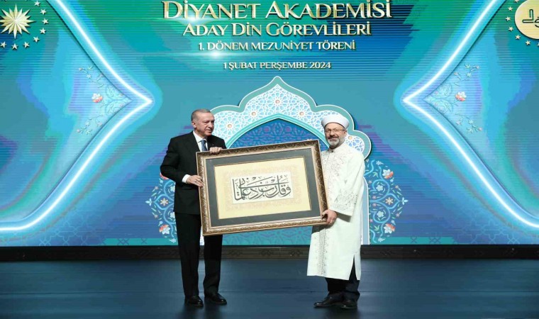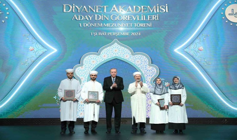 Cumhurbaşkanı Recep Tayyip Erdoğan, Beştepe Millet Kongre ve Kültür Merkezi’nde gerçekleştirilen Diyanet Akademisi Başkanlığı Aday Din Görevlileri Mezuniyet Merasimi’nde konuştu. Diyanet Akademisi Başkanlığı 1. Dönem aday din görevlileri mezuniyeti dolayısıyla konukları Cumhurbaşkanlığı Külliyesi’nde ağırlamaktan mutluluk duyduğunu belirten Cumhurbaşkanı Erdoğan, “Böylesine güzel bir atmosferde, böyle anlamlı bir program münasebetiyle gönüllerimizi kavuşturan Rabbime hamd ediyorum. Diyanet İşleri Başkanımıza ve Diyanet yönetimine de bu güzel buluşma için ayrıca teşekkür ediyorum. Bugün Diyanet teşkilatımız ve din görevlilerimizin mesleki eğitimi adına gerçekten önemli bir merasim yapıyoruz. Aslında uzun yıllara sâri bir emeğin ve projenin meyvesini almanın mutluluğunu hep birlikte yaşıyoruz” dedi.