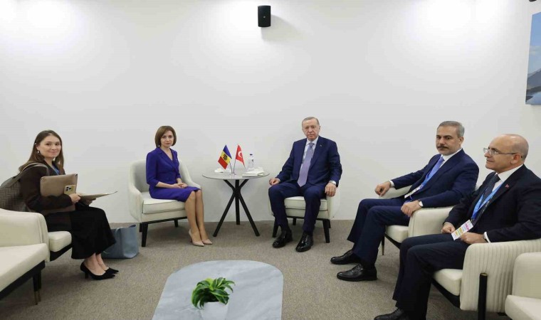Cumhurbaşkanı Recep Tayyip Erdoğan, Birleşmiş Milletler (BM) İklim Değişikliği Çerçeve Sözleşmesi 29. Taraflar Konferansı (COP29) Dünya Liderleri İklim Zirvesi dolayısıyla bulunduğu Azerbaycan’ın başkenti Bakü’de ikili temaslarını sürdürüyor. Cumhurbaşkanı Erdoğan, Moldova Cumhurbaşkanı Maia Sandu ile bir araya geldi. Görüşmede Dışişleri Bakanı Hakan Fidan, Hazine ve Maliye Bakanı Mehmet Şimşek hazır bulundu.