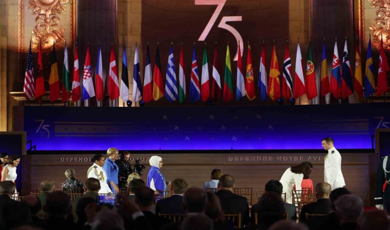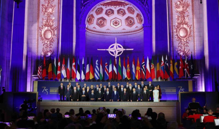 Cumhurbaşkanı Erdoğan, eşi Emine Erdoğan ile Andrew W. Mellon Auditorium’da düzenlenen NATO’nun 75. Yılı Anma Etkinliği’nde, zirveye katılan devlet ve hükûmet başkanlarıyla toplu fotoğraf çektirdi.