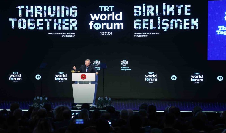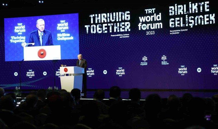 Cumhurbaşkanı Recep Tayyip Erdoğan TRT World Forum’a katıldı. Burada bir konuşma yapan Cumhurbaşkanı Erdoğan, İsrail’in Gazze’de saldırılarına devam ettiğini belirterek, "Gazze’de devam eden katliam başta olmak üzere küresel ölçekte son derece sancılı bir dönemden geçiyoruz. Rusya-Ukrayna arasındaki savaş gündemde geri plana düşmüş olsa da halen tüm yakıcılığı ile devam ediyor. Savaşın ilk aylarında ülkemizin çabalarıyla ortaya konan barış planının değeri gün geçtikçe daha iyi anlaşılıyor. O dönem ateşi büyümeden söndürmek yerine körükleyenlerin bölgemizle birlikte tüm dünyaya nasıl büyük bir kötülük yaptıkları artık net bir şekilde görülüyor. Küresel barışı ve güvenliği ağlamakla mükellef uluslararası kuruluşların sorun çözme kabiliyetlerinin olmadığını bugün daha iyi anlıyoruz. Adil bir barışın kaybedeninin olmayacağı gerçeği tartışmasız bir şekilde karşımızda durmaktadır. Temennimiz bizim adeta kendimizi paralayarak ısrarla dile getirdiğimiz bu hakikatin tüm taraflarca bir an önce idrak edilmesidir".