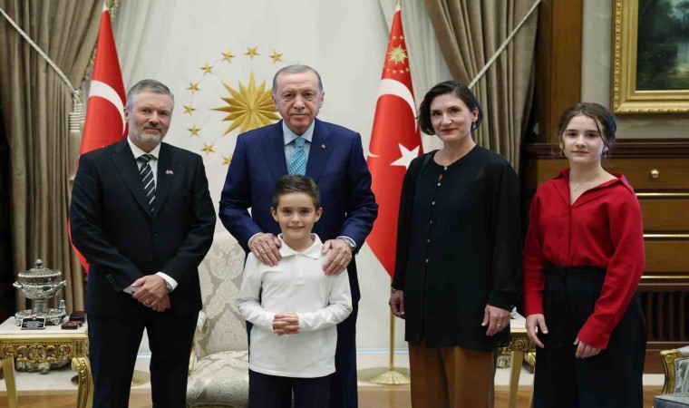 Cumhurbaşkanlığı Külliyesi’ndeki kabulde Norveç Büyükelçisi Andreas Gaarder, Cumhurbaşkanı Erdoğan’a güven mektubu sundu. Gaarder’in ailesi ve bazı büyükelçilik mensuplarını Cumhurbaşkanı Erdoğan’a takdiminin ardından hatıra fotoğrafı çektirildi.