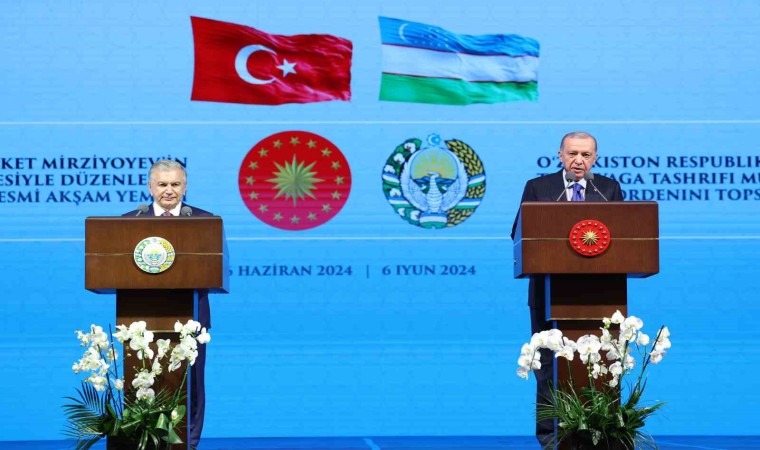 Özbekistan’ın her alanda elde ettiği başarılardan Türkiye olarak, Türk kardeşleri olarak gurur duyduklarını ifade eden Cumhurbaşkanı Erdoğan, "Bu sene Türkiye-Özbekistan diplomatik ilişkilerinin kuruluşunun 32’nci yılını idrak ediyoruz. Kapsamlı stratejik ortaklık seviyesine çıkardığımız münasebetlerimizi inşallah daha da ileri taşıyacağız. Aziz kardeşim, ilişkilerimizin bugünkü mükemmel seviyesine ulaşmasının önünü açan müstesna liderliğinizle, aramızdaki dostluk ve kardeşlik bağlarının güçlendirilmesine yönelik samimi bir irade sergilediniz. Türkiye’nin ve Türk milletinin kara gün dostu olduğunuzu 6 Şubat depremleri başta olmak üzere son yıllarda karşılaştığımız her hadisede gösterdiniz. İşte tüm bu nedenlerle Türkiye Cumhuriyeti’nin en yüksek nişanı olan devlet nişanımızı size tevcih etmekten büyük bir memnuniyet duyuyorum" ifadelerini kullandı.