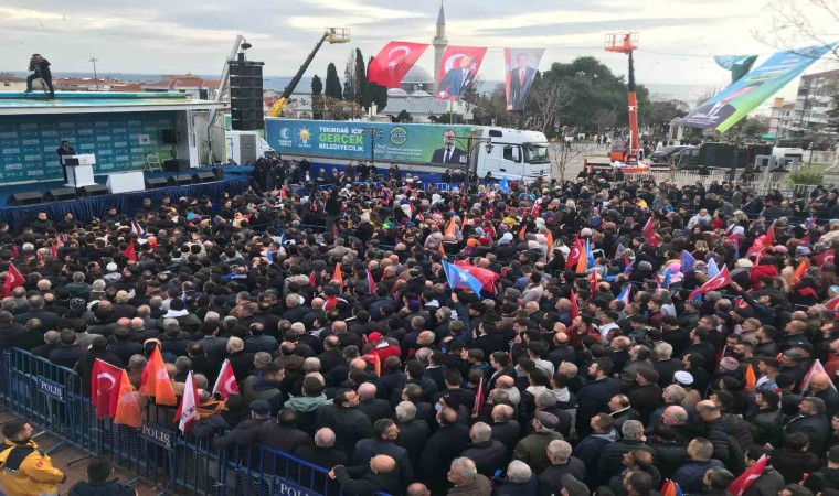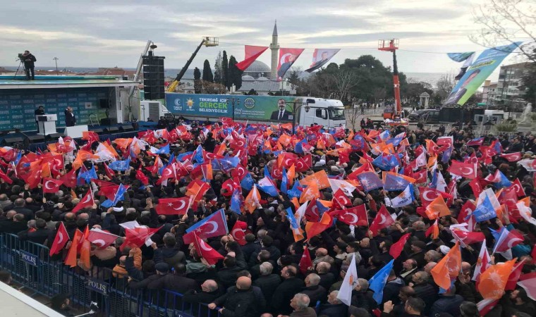 Konuşmasını sürdüren Erdoğan, “Şehrinizin eksiklerini giderme, ihtiyaçlarını karşılama, sorunlarına çözüm bulma noktasında çok daha fazlasını yaptığımızı sizler zaten biliyorsunuzdur, şunu lütfen unutmayın: Bizim siyasetteki gayemiz mensubu olmaktan şeref duyduğumuz, aziz milletimize aşkla hizmettir. 81 vilayetin tamamı, 780 bin kilometrekarenin tamamı bizim nazarımızda aynıdır, eşittir. Biz Türkiye’yi bir bütün olarak kalkındırmanın, büyütmenin, yüceltmenin çabasındayız. Tüm bu mücadeleyi koltuk veya siyasi ikbal uğruna değil, evlatlarımıza daha müreffeh, daha güçlü ve itibarlı bir Türkiye bırakmak için yapıyoruz. Biz ne diyoruz ‘Biz bu millete efendi olmaya değil, hizmetkar olmaya geldik’ elbette her fani gibi bizlerin de eksiği, hatası, gücünü aşan sebeplerle ortaya çıkan bazı eksiklikler olabilir. Gün olacak bizler de emaneti sahibine teslim edeceğiz. İşte kızımız kadın kollarında başkan yardımcısıydı. Dün emanetini sahibine teslim etti. Ben de yetişirsem cenazesine gideceğim. Yol arkadaşımız, dava arkadaşımız bu kardeşimizin cenazesine katılmak bizler için bir görev. Devletimizin bekası, milletimizin huzuru, evlatlarımızın aydınlık yarınları için döktüğümüz terin tanığı 85 milyonun her bir ferdidir: 31 Mart’ta Tekirdağ’da artık bir yola ama yepyeni bir yola girelim diyorum. Öyleyse ne yapacağız. Şu 50 günde çok çalışmaya var mıyız? Tekirdağ, CHP’nin korku siyasetine kurduğu, esersizlik siyasetine mecbur değildir, mahkum değildir. Tekirdağ, gelişme ve ilerleme yerine CHP’nin beceriksiz yönetimi altında hayatta kalma mücadelesi vermeye mahkum değildir. Tekirdağ’da muhalefetin sömürdüğü sahte ve sanal kaygılar hizmetin önüne artık geçmemelidir. Tekirdağ, mevcut durumdan çok daha iyisini hak ediyor. Tekirdağ, Büyükşehir kimliğine uygun hizmetleri artık fazlasıyla hak ediyor. Gelin hep birlikte Tekirdağ’ın içine düştüğü bu dehlizden çıkaralım. Gelin Tekirdağ’ı Cumhur İttifakı’nın gerçek belediyecilik vizyonuyla buluşturalım. Bu konuda şehrimize her açıdan çağ atlatacak güçlü bir kadro kurduk. Başka hesaplar peşinde koşmadan sadece hizmet edecek, her anınızda hep yanınızda olacak isimleri aday olarak belirledik. Geçtiğimiz günlerde tüm adaylarımızın tanıtımı yapıldı. Biz belediye başkan adaylarımızın tamamına güveniyoruz, inanıyoruz. Kararlıyız ve kazanacağız. Tekirdağ’ın tercihinin de başta büyükşehir olmak üzere inşallah bu sefer Cumhur İttifakı’nın yanında olmasını temenni ediyorum. Büyükşehir ve ilçe belediye başkan adaylarımızı sizlere emanet ediyorum. 31 Mart akşamı Tekirdağ’dan müjdeli haberler bekliyorum. Tekirdağ, 31 Mart’ta gerçek belediyeciliği tercih ediyor muyuz? 31 Mart’ta Cumhur İttifakı’na destek veriyor muyuz? Rabbim yolumuzu, bahtımızı açık etsin. Rabbim bizi utandırmasın, mahcup etmesin” diyerek konuşmasını noktaladı.