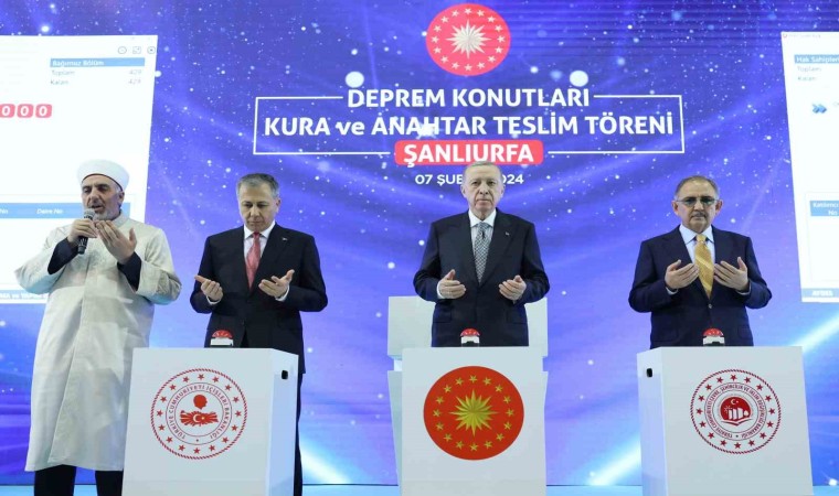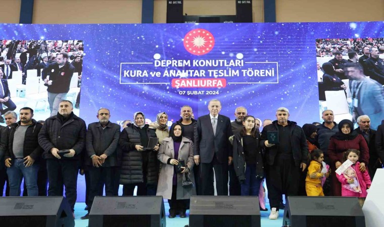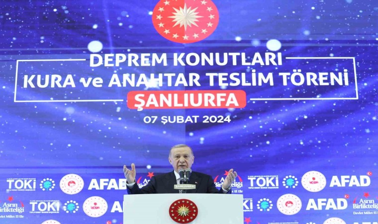 Cumhurbaşkanı Erdoğan, “Şanlıurfa’da bin 208’i il ve ilçe merkezlerinde 106’sı kırsalda olmak üzere toplam bin 314 afet konutumuzun kurasını çekiyoruz. Deprem konutlarının hak sahibi kardeşlerimize hayırlı olmasını diliyorum. Şanlıurfa’da yaklaşık 4 bin konutumuzun yapımı hızla devam ediyor. Bunları da mümkün olan en kısa zamanda tamamlayıp hak sahibi kardeşlerime teslim edeceğiz. Şanlıurfa’yla birlikte deprem bölgesindeki vatandaşlarımıza mahcup olmamak için canla başla çalışacağız. Yaklaşık 22 yılı iktidarda olmak üzere 40 yıldır sizlerin huzurundayız. Çok farklı sınamalarla karşılaştık. Tüm bu imtihanları 85 milyon vatandaşımızla tam bir dayanışma içerisinde mücadele ederek vermeyi başardık. Bir başka ülkenin veya milletin başına gelse o ülkeyi yerle yeksan edecek nice hadise nice kriz bizi yolumuzdan döndüremedi. Elbette bedel ödedik, yaralar aldık, sarsıldık ama ne kadar büyük olursa olsun hiçbir badirenin hedeflerimizle aramıza girmesine müsaade etmedik. Ekonomide, sağlıkta, demokraside, terörle mücadelede tarihi nitelikte adımlar atarken vatandaşlarımıza meydana verdiğimiz sözleri de tek tek hayata geçirmeye gayret ettik” şeklinde konuştu.
