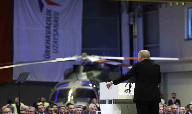 Şu an çatısı altında olduğumuz TUSAŞ, Türk savunma sanayinin nasıl badireler atlattığının, hangi zorluklarla, hangi engellerle karşılaştığının en canlı şahitlerinden biri olduğuna dikkat çeken Erdoğan, "Cumhuriyetimizin ilk yıllarında Gazi Mustafa Kemal’in başlattığı sanayi hamlesinde savunma sanayimiz de bulunmaktaydı. Vecihi Hürkuş, Şakir Zümre, Nuri Demirağ, Nuri Killigil gibi müteşebbislerin gayretlerini bugün bile hayranlıkla hatırlıyoruz. Ancak bu vizyoner çabaların, içeriden ve dışarıdan birileri tarafından nasıl akamete uğratıldığını da hepimiz çok iyi biliyoruz. Türkiye çok erken başladığı ilk etapta çok önemli mesafe de aldığı bu yarıştan maalesef kopartılmıştır. Savunma sanayi alanında ülkemiz neredeyse tamamen dışa bağımlı hale gelmiştir. Kıbrıs Barış Harekatı’nda dışa bağımlı olmanın sakıncalarını hem de acı bir şekilde tecrübe ettik. Önce tehditle başlayan ardından ambargoyla devam eden süreç ülkemiz için kendi kendine yeten bir savunma sanayinin önemli göstermiştir. Halkımızın desteğini kurulan silahlı kuvvetlerimizi güçlendirme vakıfları eliyle hayata geçen ASELSAN, TUSAŞ, HAVELSAN sonrasında ROKETSAN gibi kurumlar bu süreci ürünleridir” diye konuştu.