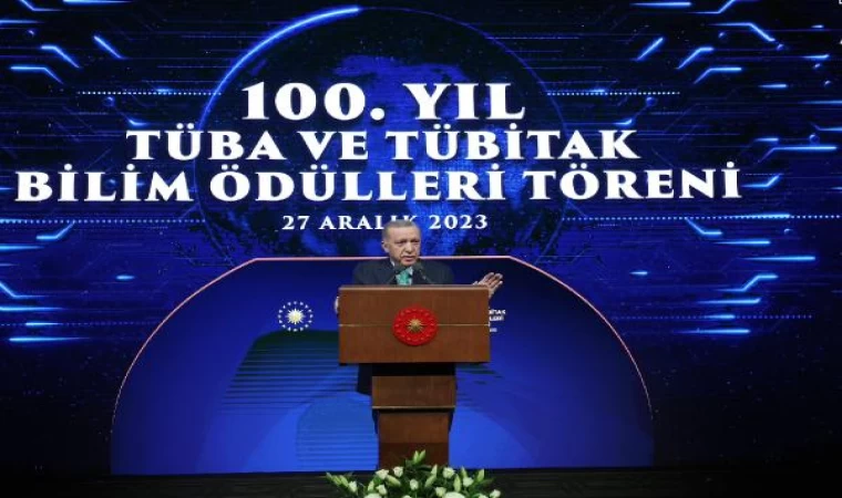 Cumhurbaşkanı Erdoğan, Beştepe Millet Kongre ve Kültür Merkezi'nde düzenlenen 100'üncü Yıl TÜBİTAK (Türkiye Bilimsel ve Teknik Araştırma Kurumu) ve TÜBA (Türkiye Bilimler Akademisi) Bilim Ödülleri Töreni'nde konuştu. Erdoğan, "Bildiğiniz gibi bizim kültürümüzde marifet, iltifata tabidir. İyi olanı, başarılı olanı, ülkemizin önünde yeni yollar açanı ödüllendirmek, insanlığın ortak ilim hazinesine katkı yapanı takdir etmek; görevimizdir. Başarılar desteklendikçe büyür, sahip çıkıldıkça gelişir, toplum tarafından kadri kıymeti bilindikçe serpilir. Taltif ve takdir edilen her başarı yeni çalışmaların, ilham veren yepyeni başarı hikayelerinin önünü açar. İlmi çalışmaları ve çığır açıcı eserleri ile bilim dünyasına önemli katkılar sunan, ülkemizin müreffeh yarınları adına gece gündüz demeden çalışan tüm bilim insanlarımızı şahsım ve milletim adına tebrik ediyorum. Bu sene 77 bilim insanımız, TÜBA ve TÜBİTAK ödüllerine layık görüldü. Uluslararası TÜBA Akademi Ödülleri'ni bu yıl sağlık ve yaşam bilimleri ile fen ve mühendislik bilimleri kategorisinde 3 bilim insanımıza veriyoruz. Bu 3 ödülle TÜBA Akademi Ödüllü bilim insanı sayımız, 28'e yükseliyor. Üstün başarılı genç araştırmacılara verilen TÜBA GEBİP (Üstün Başarılı Genç Bilim İnsanı Ödülleri) ödüllerini ise 24 farklı üniversiteden 34 genç bilim insanımıza takdim edeceğiz. Böylece TÜBA GEBİP ödülü kazanan bilim insanı sayımız, 644'e ulaşıyor. Bilimsel Telif Eser Ödülleri'nde 13 Türkçe Bilimsel Telif Eserimiz ödül almaya hak kazandı" dedi.