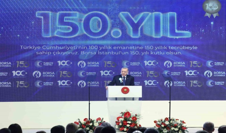 Son 21 yıldır yapılan düzenlemeler sayesinde sermaye piyasanın ve borsanın köklü bir dönüşüm geçirdiğini kaydeden Cumhurbaşkanı Erdoğan, "İstanbul Finans Merkezi’nin de hizmete girmesiyle birlikte Türkiye’nin finans alanındaki merkezi konumu daha da güçlendi. Türk ekonomisinin yüksek büyüme potansiyeli, yerli yatırımcıların yanı sıra uluslararası yatırımcılarında ilgisini çekti. Son yıllarda Türk borsasına yönelik teveccühün hem içeride hem de dışarıda giderek arttığını ifade ediyoruz. Küresel ekonomide daralma yaşanırken yabancı sermaye akışları her yerden gerilerken Türkiye borsa üzerinden yabancı sermaye çekmeyi yani ekonomik büyümesine finansman etmeyi sürdürüyor. Tüm dünyada risk iştahının düştüğü sermayenin korunaklı alanlara doğru çekildiği bir dönemde uyguladığımız mali programın bir sonu olarak Türkiye uluslararası sermaye açısından çekim merkezi vasfını koruyor. Son 21 yılda 255 milyar dolardan fazla uluslararası yatırım çekmiş bir ülke olarak inşallah önümüzdeki dönemde sermaye piyasalarımızın daha da derinleşmesine ve tabana yayılmasına ağırlık vereceğiz. Bilhassa katılım finans ve İslami yatırım araçları konusunda çok ciddi bir potansiyel olduğu anlaşılıyor. Vatandaşımızın gönül huzuruyla birikimlerini değerlendireceği ve reel ekonominin istifadesine sunacağı bir iklimi tesis etmekte kararlıyız. Enflasyondaki artışın kontrol altına alınmasıyla birlikte ülkemize yönelik kaynak akışının daha da hızlanacağına inanıyoruz. Risk primindeki gerileme ve kredi notumuzdaki iyileşmenin etkisi başta borsamız olmak üzere sermaye piyasalarımızda da hissedilecektir. Enflasyondaki dengelenmeye bağlı olarak borsamızın derinliği artacak ve yatırımcılarımız finansman kaynaklarına daha rahat erişebilecektir. Yeni, özgün ve çığır açan projelerle Borsa İstanbul’un Türkiye Yüzyılı vizyonumuza omuz verdiğini görmekten memnuniyet duyuyorum. Borsamız şirketlerimizin kurumsallaşmasında önemli bir itici güç olurken dijital ve yeşil dönüşüme de önemli katkı sağlıyor. Borsamız katılım finanstan kıymetli madenlere geniş bir alanda piyasanın ihtiyaçlarına göre kendini yeniliyor. Altyapısını sürekli modernize ediyor. Borsamızın yerli ve milli imkanlarla geliştirdiği ‘bistech 3.0’ sisteminin ülkemize hayırlı olmasını diliyorum. Üniversite öğrencilerine yönelik bistech, Borsa İstanbul Teknoloji Akademimizin kuruluşunu da takdirle karşıladığımı ifade etmek istiyorum. Bu düşüncelerle borsamızın 150’nci kuruluş yıl dönümünün tekrar hayırlı olmasını diliyorum” dedi.