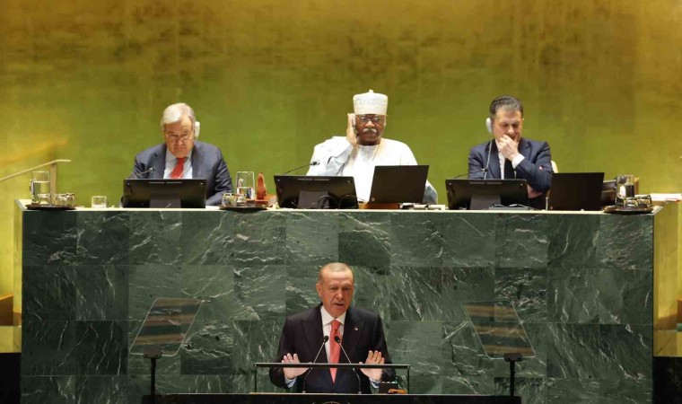 Birleşmiş Milletler’in milyonlarca insanın hayatını kaybettiği İkinci Dünya Savaşı sonrasında uluslararası barışı ve güvenliği korumak amacıyla kurulduğunu hatırlatan Cumhurbaşkanı Erdoğan, “Birleşmiş Milletlerin kuruluşuyla birlikte küresel istikrara, huzura ve adalete dair beklentiler yeniden yeşermiş, barış umutları yeniden filizlenmişti. Ancak üzülerek görüyoruz ki; son yıllarda Birleşmiş Milletler kuruluş misyonunu ifa etmekte yetersiz kalıyor. ;giderek işleviz, hantal ve atıl bir yapıya dönüşüyor. ’Dünya beşten Büyüktür’ şiarının temsil ettiği değerlere, bugünlerde daha fazla ihtiyaç duyuyoruz” açıklamasını yaptı.