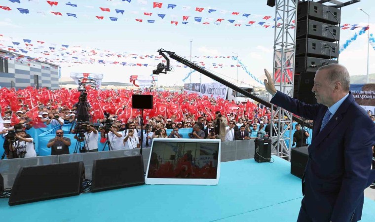 Erdoğan, savunma sanayi alanının da son 22 yılda destan yazdıkları alanların en başında geldiğini, yüzde 80 yurt dışına bağımlı olan Türkiye’yi kendi uçağını, kendi gemisini, kendi silah ve mühimmatını üretir hale getirdiklerini vurguladı.