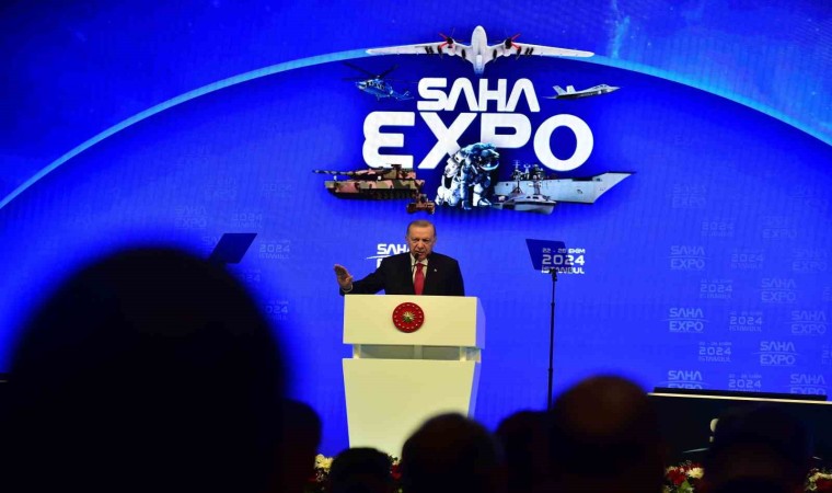 SAHA İstanbul’un bundan 9 sene önce savunma ve havacılık sektörünün lokomotifi olma hedefiyle kurulduğunu söyleyen Cumhurbaşkanı Erdoğan, "Yerlilik oranlarını artırmayı, kritik teknolojileri ülkemize kazandırmayı, uluslararası rekabet gücümüzü yükseltmeyi amaçlayan SAHA İstanbul, kuruluşundan bu yana geçen sürede çok büyük mesafe kat etti. SAHA İstanbul bugün 52 farklı sektörden üyeye, bin 200’ü aşkın şirkete, 29 üniversiteye ve 45 şehre yayılmış geniş bir ağa ulaşmıştır. Kısa sürede ulaşılan bu geniş ağı, savunma ekosistemimiz adına çok kıymetli buluyorum. SAHA EXPO’nun ise Türk şirketlerini küresel pazarla buluşturan bir köprü vazifesi üstlendiğine tanık oluyoruz. 2018’de ilki düzenlenen SAHA EXPO Fuarı ile ülkemiz firmalarının iş geliştirme ve ihracat çabalarını samimiyetle destekliyoruz. Rakamlar SAHA EXPO’nun sektörde geldiği seviyeyi ortaya koymaktadır. 150 binden fazla ziyaretçi, 300’ün üzerinde delegasyon, 150’den fazla alıcı delegasyonu, 120’yi aşkın ülkeden üst düzey katılım, bin 400’den fazla şirket iştiraki ile SAHA EXPO memnuniyetle belirtmek isterim ki savunma sektöründe önemli bir platform haline gelmiştir. Yine fuar boyunca 4,6 milyar doları ihracat sözleşmesi olmak üzere toplam 6,2 milyar dolarlık anlaşmaların imzalanacak olması da dikkate değerdir. Geçen yıl biliyorsunuz savunma ve havacılık sektörümüz toplam 5,6 milyar dolarlık ihracat rakamları yakalamıştır. SAHA EXPO’da neredeyse bu tutara yakın ihracat sözleşmelerine imza atılmış olacak. Ülkemize bu önemli başarıları yaşatan SAHA EXPO’yu ve tüm katılımcı firmalarımızı tebrik ediyorum” diye konuştu.