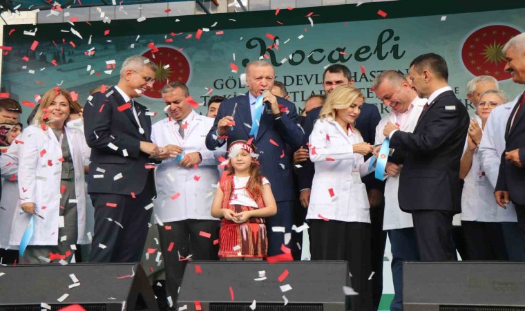 Kocaeli Şehir Hastanesi açıldığında, SEKA ve Derince hastanelerinin tamamen kapanacağının iddia edildiğini hatırlatan Erdoğan, “Bu hastanelerde ana hizmetler devam ettiğini gibi, şehir merkezine 100’ü acil durum olmak üzere 600 yatak daha ilave ediyoruz. Ülke menfaatine olan her işe bir kulp takan muhalifleri milletimize havale ediyoruz. Bunların kararını ben size havale ediyorum. Kardeşlerim, her zaman söylüyorum; bu millete hizmetkar olmak nasip meselesidir. Biz bu millete efendi değil, hizmetkar olmaya geldik. Böyle de devam edeceğiz. Eserlerimizle kalplerimizi fethetmenin yolundayız. Bugün de hizmet dışında bir amacımız yok. Hesapçı değiliz, başkaları gibi kafamızda 40 tilki dolaştırmıyoruz. Sadece milletin teveccühüne mazhar olmaya çalışıyoruz. Bakınız bundan 16 ay önce siyasi tarihimizin en çekişmeli seçimlerinden birini gerçekleştirdik. 14-28 Mayıs seçimlerinde vatandaşlarımız bize 5 sene daha kendisine hizmet görevi verdi. CHP’nin devrik genel başkanını, yanındaki ve yöresindekilerle beraber tekmili birden sandıkta hezimete uğrattık. Sonra birbirine düştükleri yardımcılarını değil, okyanus ve sınır ötesindeki destekçilerini de milletimizin desteğiyle tuş ettik. Yüzde 52 oy oranı ile 5 yıl boyunca Türkiye’yi yönetme sorumluluğunu üstlendik. Bunun 16 ayını hamd olsun alnımızın akıyla geride bıraktık” diye kaydetti.