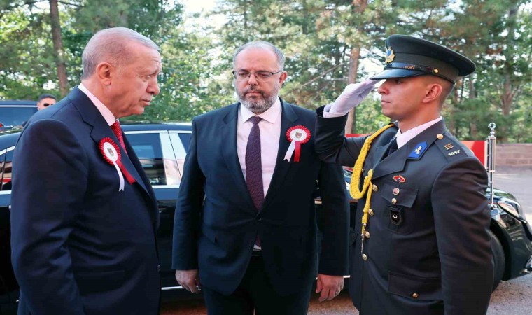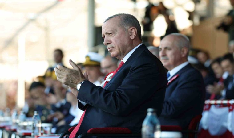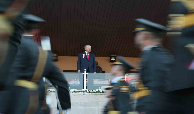 Türk milletini diğer toplumlardan ayıran bazı vasıflar olduğuna dikkati çeken Erdoğan, “Bunların en başında adeta bizimle özdeşleşmiş olan ordu-millet bulunur. Tarihimiz boyunca devlet komutan, millet de asker olmuştur. Her Türk asker doğar. Bu söz milletimizin bu topraklarda yürüttüğü varlık-yokluk mücadelesiyle eşleşmiştir. Nesilden nesile aktarılan askerlik, milletimiz için bir meslekten ziyade din, vatan, devlet ve bayrak için namus borcu olarak görülmüştür. 2 bin 233 yılı aşkın köklü bir maziye sahip Türk Silahlı Kuvvetlerimizin kodlarında hep bu anlayış hakimdir. Bugün de milletimizin kendi olan Türk Silahlı Kuvvetlerimiz, ülkemizin bağımsızlığının, vatanımızın bölünmez bütünlüğünün, milli birlik ve beraberliğimizin güvencesidir. Ordumuz ayrıca bir şeref payesi olarak onurla taşıdığı ay yıldızlı bayrakla dünyanın dört yanındaki mazlumlar için de umut kaynağıdır” şeklinde konuştu.