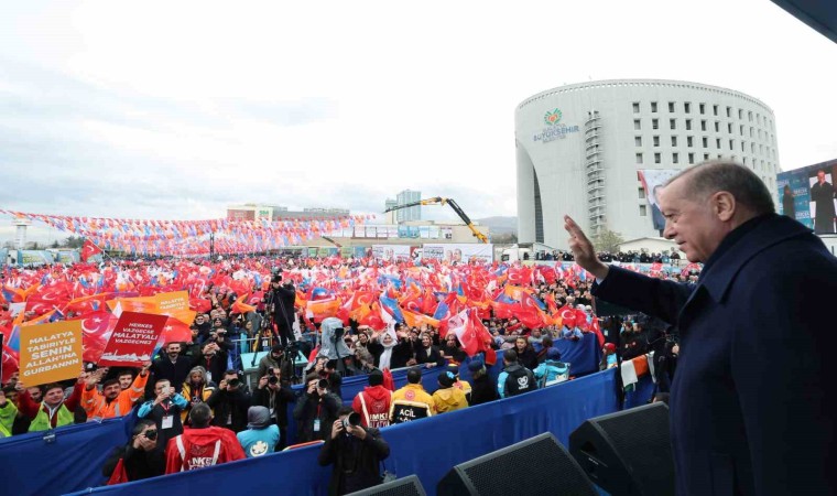 Büyükşehir Belediyesi arkasında bulunan miting alanında gerçekleşen buluşmada konuşan Cumhurbaşkanı Recep Tayyip Erdoğan, “Malatya’ya bir ay önce gelecektik ama nasip olmadı bugün sizlerle hasret gidererek bu gecikmeyi telafi ediyoruz” dedi. Geçtiğimiz yıl Mayıs ayında yapılan seçimlerde Cumhurbaşkanlığında yüzde 72, milletvekilliğinde yüzde 69 oy oranıyla Cumhur İttifakı’na destek veren Malatyalılara teşekkür eden Erdoğan, “Sizler bize güvendiniz, üzerinize düşeni yaptınız biz de İnşallah bunun karşılığını vermek için gece gündüz çalışacağız. İnşallah 31 Mart’ta da büyükşehir ve ilçe belediyeleriyle Malatya’da Cumhur İttifakı’nı rekor bir oya taşıyacağınıza inanıyorum” dedi.