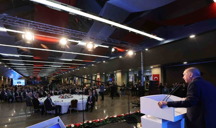 “Yakın tarihimizde yaşanan krizleri hepimiz çok iyi hatırlıyoruz. Başımıza gelen her hadisenin ülkemize ağır faturaları oldu" diyen Cumhurbaşkanı Erdoğan, "Türkiye’yi içine düştüğü kriz girdabından biz kurtardık. Ülkemiz kalkınma yolculuğunda önemli bir avantaj elde etti. Zaman zaman kasisler ile karşılaşsak da hedeflerimize doğru sabırla ama emin adımlarla ilerliyoruz. Çevremizde yaşanan onca sıkıntıya hatta savaşa rağmen rotamızdan sapmadık. Sadece deprem sebebiyle 104 milyar dolarlık ilave yükle karşılaşmış olsak da yüzde 4,5 gibi çok iyi bir oranla ekonomimiz büyümesini sürdürdü. Milli gelirimiz ilk kez 1,1 trilyon doların üzerine çıktı. İşsizlik oranı yüzde 9.4 ile son 10 yılın en düşük seviyesini gördü. Şubat ayında 21.1 milyar dolarla en yüksek ihracat rakamına ulaştık. Türkiye’nin sağlık turizminden aldığı pay da günden güne artıyor. Geçen sene bu kapsamda hastanelerimize 1,2 milyon başvuru yapıldı. Yapımı devam eden şehir hastanelerimizin de devreye girmesiyle bu sayının daha da yükseleceği kanaatindeyiz. Bu sene mal ve hizmet ihracatında hedefimiz 375 milyar dolar, turizmde hedefimiz ise 60 milyar dolardır. İş dünyamızın çabalarıyla daha öncekiler gibi bu hedeflerimize de ulaşacağımızdan şüphe duymuyorum” ifadelerini kullandı.