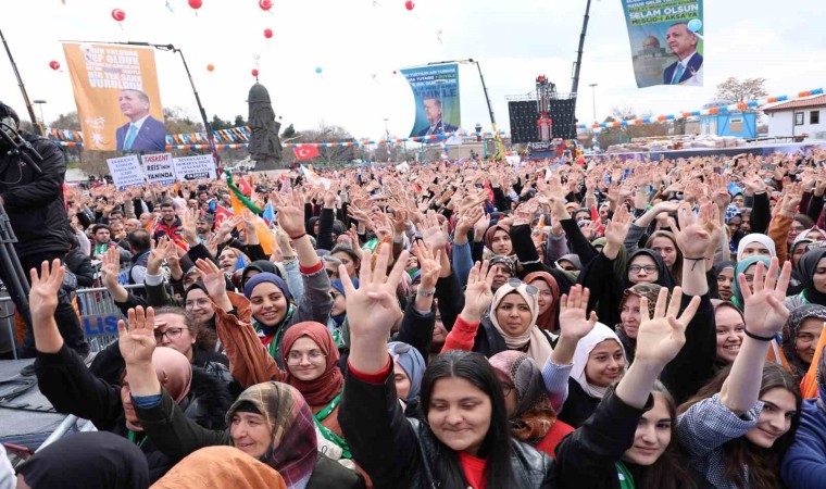 Konya ile gönül bağlarının çok eskilere dayandığını ifade eden Cumhurbaşkanı Recep Tayyip Erdoğan, "Gençliğimizden beri girdiğimiz her mücadelede Konya’yı dimdik yanımızda bulduk. Konya her zaman bizimleydi. İnşallah Türkiye Yüzyılı’nın inşasını da Konya ile gerçekleştireceğiz. Milletvekilliğinde yaklaşık yüzde 70 ve Cumhurbaşkanlığında yüzde 73 oranlarındaki destekle Konya ahdimize bağlı olduğunu bir kez daha ispatladı. Emniyetten sordurdum, meydanda ne kadar katılım var diye. Ne dediler, yollar hariç, hava limanından buraya kadar yollar hariç 110 bin. Konya bu. Her zamanki gibi Konya bu. Sizler bu duruşunuzla meselenin sadece seçim sandık değil, asıl meselenin kutlu bir davanın sancağını yüceltmek olduğunu tüm dünyaya gösterdiniz. Konyalıya sadakat ve siz bu sadakati bozmayın. Konya’nın 31 Mart’ta da rekor bir oyla belediyecilikte tarih yazacağına inanıyorum. Selçuklu başkenti Konya’ya da bu yakışır. Şehirler içinde emsali bulunmayan Konya’ya milli iradeye sahip çıkma konusunda da emsalsiz olmak yakışır. Konevi ile Mevlanaların yoldaşı Konya’ya oy vermek yakışır. Unutmayınız, Konya sadece kendi sınırlarından ibaret bir şehir değildir. Anadolu’ya başkentlik, nice şehirlere ev sahipliği yaptı. Sadece kendisi kalkınmak ve gelişmekle kalmadı, herkese faydası dokundu. Konya tüm mazlum ve mağdurlara el uzatarak yaralarını saran gönüllerini alan şehir vasfını sürdürüyor. Konya Büyükşehir Belediyemiz deprem bölgesinde yapmadık destek bırakmadı. Konyalı kardeşlerimiz de deprem bölgesinde yapmadık destek bırakmadı" dedi.