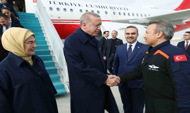 Cumhurbaşkanı Erdoğan, Esenboğa Havalimanı’nda Türkiye’nin ilk Astronotu Alper Gezeravcı ve ailesini kabul etti.