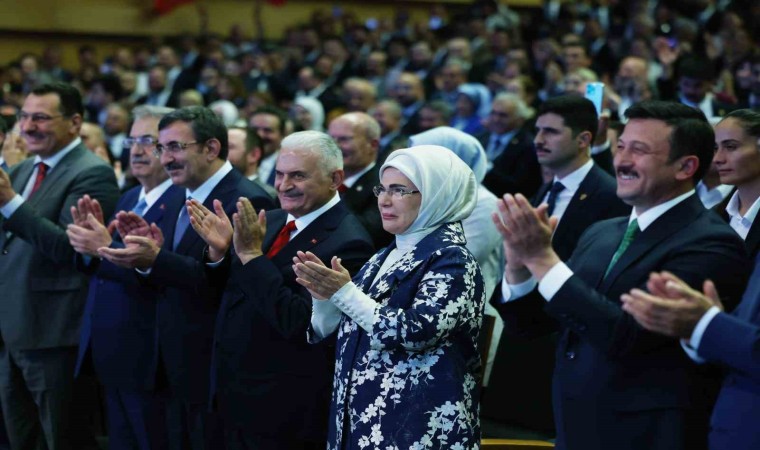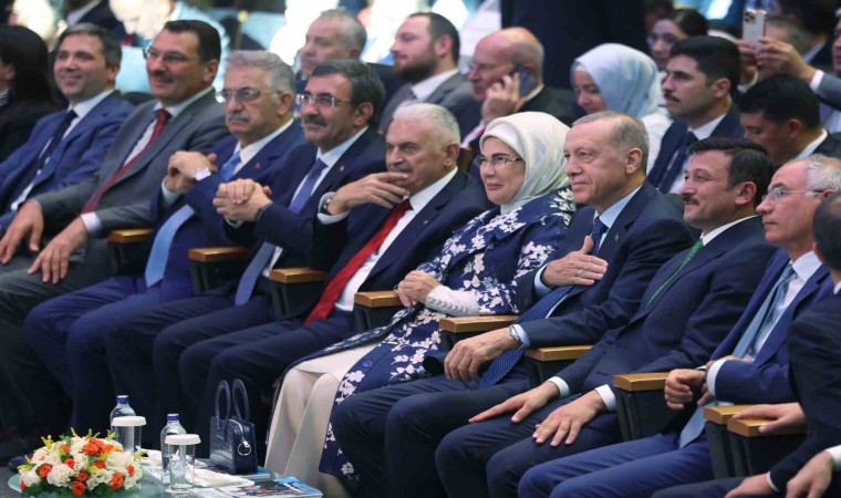 22 yıl boyunca içeriden ve dışarıdan yıkmak için denenmeyen yol kalmadığını ifade eden Erdoğan, “Hak ve hürriyetler noktasında vesayetçilerin bıraktığı enkazı temizleyerek demokrasimizin standartlarını sizlerle beraber biz yükselttik. 22 yıllık dönemde içeriden, dışarıdan bizi yıkmak için denemedikleri yol kalmadı. Nice ihanetlere maruz kaldık. Nice saldırılara göğüs gerdik, nice badireler atlattık, nice engelin, zorluğun, sıkıntının üstesinden geldik. Karanlık cinayetlerden cumhuriyet mitinglerine, medya provokasyonlarından kapatma davasına, 367 garabetinden 17-25 Aralık girişimine, Gezi olaylarından 15 Temmuz kanlı darbe teşebbüsüne her çeşidinden terör saldırılarından ekonomik tuzaklara kadar bir siyasi hareketin belki de asırlar boyunca karşılaşmayacağı sayıda hainliği, vandallığı, hukuksuzluğu biz sadece 22 yılda yaşadık, gördük. Neyle karşılaşırsak karşılaşalım, her zaman Allah’a dayandık, sahaya sarıldık. Hikmetine haram olduk. Yol varsa budur, bilmiyoruz başka çıkar yol dedik. Milletimize olan minnet borcumuzu hep daha çok çalışarak, daha fazla koşturarak, daha fazla hizmet ederek ödedik. Aklınıza gelen bir başlıkta ülkemizi ayağına takılan zincirlerinden Allah’a hamdolsun biz kurtardık. Cumhurbaşkanlığı Hükümet Sistemi’yle tarihimizde ilk defa doğrudan milletin tercihiyle sivil irade eliyle yönetim sistemimizi değiştirdik. Türkiye’nin 81 vilayetinin tamamına, 922 ilçemizin her birine beldelerden köylere kadar 780 bin kilometrekarenin her karışını eser ve hizmetlerimizle nakış nakış işledik. Eğitimde, sağlıkta, adalette, güvenlikte, ulaşımda, sanayide, ekonomide, tarımda, hasılı hayatın her alanında bizden önce yapılan hizmetlerin kat be kat fazlasını iktidarlarımız dönemine sığdırmayı başardık. Merhum Mehmet Akif’in milletimizin üç asırlık özlemlerine tercüman olduğu şu hayalinin mimarı AK Parti olmuştur: ’Sayısız mektep açılmış, kadın, erkek okuyor. İşliyor fabrikalar. Yerli kumaşlar dokuyor. Gece gündüz basıyor millete nafi asar. Adeta matbaalar bir uyumaz hizmetkar mülkü baştan başa iman edecek şirketler halkın inşaatına hadi yeni cemiyetler durmayıp iş buluyor gösteriyor, uğraşıyor, gemiler sahile boydan boya servet taşıyor.’ Akif’in dile getirdiği o yerli üretimi başta savunma sanayii olmak üzere her alanda gerçeğe dönüştüren kadro işte buradadır, bu salondadır. Bizlere bu şerefi bahşeden Rabbimize hamd ediyoruz” diye konuştu.