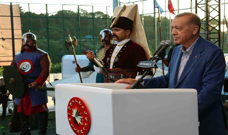 Cumhurbaşkanı Erdoğan, “Milletimizin orduyla arasını açmayı hedeflediler. Bizim askerimizin adı Mehmetçik’tir. Neden bizim askerimize Mehmetçik demişiz. Küçük Muhammed adına Mehmetçik demişiz. Tarihten böyle gelir. Hiçbir ülkede böyle bir isim yok, sadece biz de var. Mehmetçik’i yedirmeyiz, gereği neyse yaparız. Kamu kurumları içinde güvensizlik oluşturarak zaaf oluşturmaya çalıştılar. Doğu ile Batı’yı işgal edilmesi de bir mesajdı. O köprü burada. İşgal edebildiler mi? Benim milletim kadınıyla erkeğiyle tankların altına yattı ve direndi ve köprümüz işgal edilemedi. ’Köle olmayacağız’ dedik, ’Devletimizi parçalatmayacağız’ dedik, ’Türkiye’yi işgal ettirmeyeceğiz’ dedik, ’Şanlı bayrağımızı indirtmeyeceğiz’ dedik. FETÖ’cü alçaklara teslim olmadık. 15 Temmuz ruhunu anlamayanlar Çanakkale’yi, Sakarya’yı, Dumlupınar’ı anlayamazlar. 15 Temmuz’u anlamayanlar, ’Hakkıdır hakka tapan milletimin istiklal’ mısrasının manasını anlayamazlar. 15 Temmuz’u anlayamayanlar, ’Allah devlete millete zeval vermesin’ diyen ağzı dualı annelerimizi anlayamazlar. 15 Temmuz direnişini lekelemeye kimsenin gücü yetmeyecektir. Canıyla imtihan edilip imtihandan geçen milletimizin irfanını ölçmeye 15 Temmuz’a kontrollü darbe iftirası atan gafillerin kıraatı yetmez. 15 Temmuz’un sulandırılması ne biz ne de milletimiz izin vermeyecektir” şeklinde konuştu.