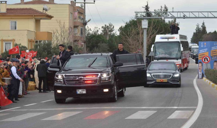 Balıkesir Devlet Hava Meydanları İşletmesi’ne ait havaalanına gelen Cumhurbaşkanı Erdoğan, havaalanından çıkıp Cengiz Topel Caddesi’ne geldiği an caddeyi sağlı sollu dolduran vatandaşlarla karşılaştı. Halk oyunları ekibi otobüs önünde figürlerini sergilerken, bazı vatandaşlar otobüs önünde Cumhurbaşkanı Erdoğan ile fotoğraf çekildi. Karanfillerin atıldığı karşılama töreninde Erdoğan’a vatandaşlar sevgi gösterilerinde bulundu. AK Parti Altıeylül İlçe Başkanlığı önünden geçen otobüste Erdoğan vatandaşları selamladı.
