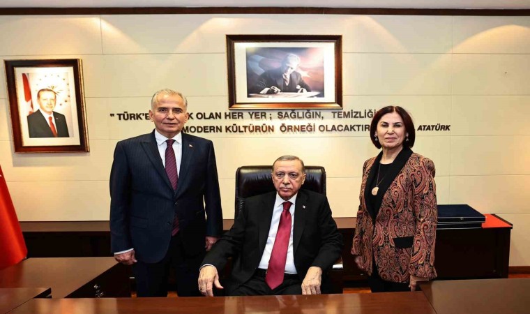 Cumhurbaşkanı Recep Tayyip Erdoğan Denizli’de vatandaşlarla buluşmasının ardından Denizli Büyükşehir Belediye Başkanı Osman Zolan’ı makamında ziyaret etti.
