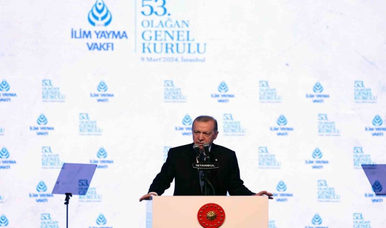 Cumhurbaşkanı Recep Tayyip Erdoğan, Haliç Üniversitesi’nin konferans salonunda düzenlenen İlim Yayma Vakfı 53. Olağan Genel Kuruluna katıldı. Kurulda yaptığı konuşmada Cumhurbaşkanı Erdoğan, İsrail’in Gazze’ye yönelik saldırılarına tepki gösterdi.