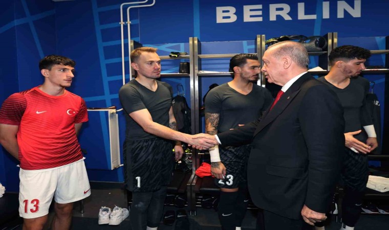 Türkiye-Hollanda maçını stadyumda izleyen Cumhurbaşkanı Recep Tayyip Erdoğan, karşılaşmanın ardından soyunma odasına inerek milli futbolcuları tebrik etti.