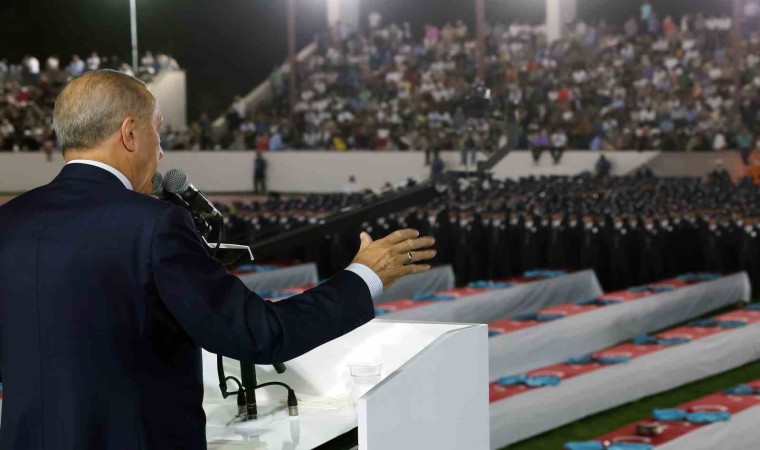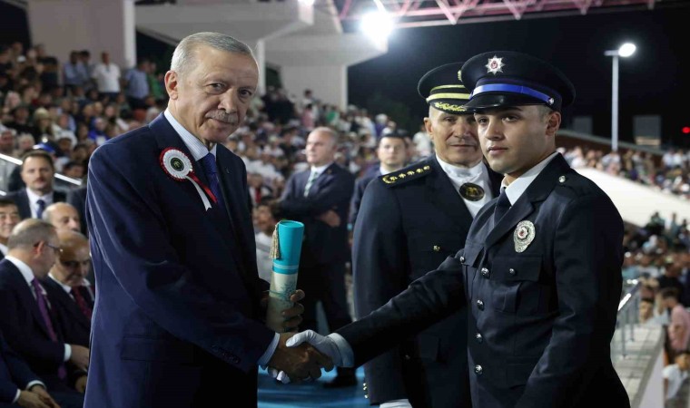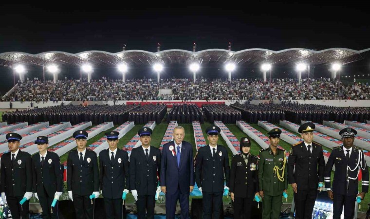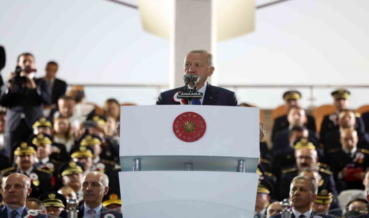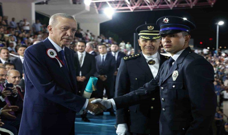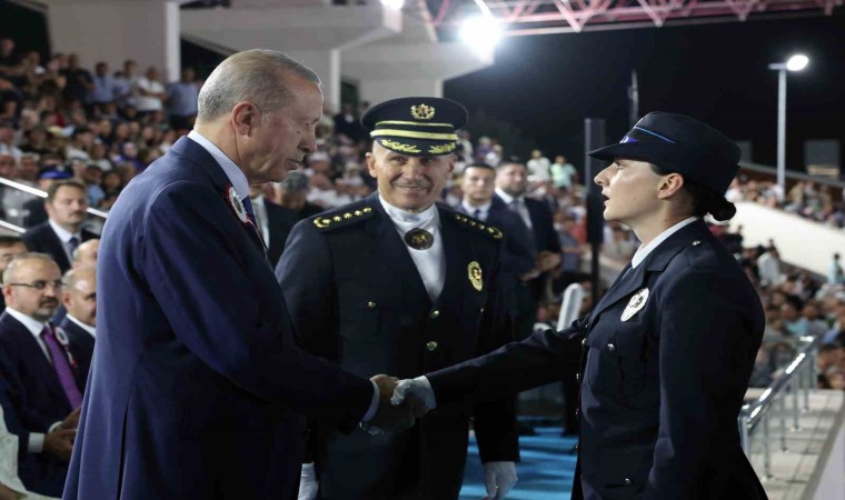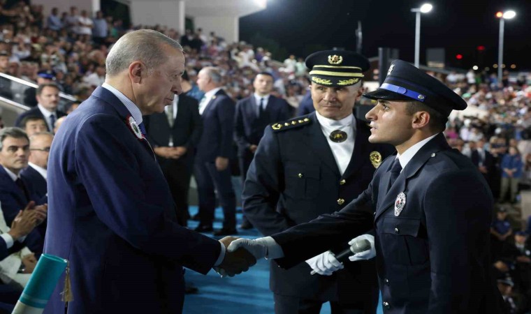 Bugün bünyesine katılan 2 bin 89 yeni polis memuru ile birlikte emniyet teşkilatının daha da güçleneceğine vurgu yapan Cumhurbaşkanı Erdoğan, "Rabbim sizleri her türlü kazadan, beladan, saldıran muhafaza buyursun. Ülkemizin dört bir köşesinde 81 vilayetimizin tamamında asayişi, güvenliği ve huzuru sağlamak amacıyla gece gündüz demeden fedakarca görev yapan tüm polislerimize teşekkür ediyorum. Milletçe kendimizi huzur ve güvende hissediyorsak bunun arkasında tüm birimleri ve kademeleriyle emniyet teşkilatımızın emeğinin yer aldığını çok iyi biliyoruz. Polislerimiz sorumluluğu ağır bir mesleği şanla şerefle yaparak insanın en başta gelen ihtiyacı olan güvenlik talebini karşılıyor. Sizler ifa ettiğiniz ve edeceğiniz görevlerle aynı zamanda devletimizin bekasının, milletimizin esenliğinin, toplumsal barışımızın da teminatısınız. Ekonomide elde ettiğimiz başarının ticarette yakalanan ivmenin, turizmden gelen güzel haberlerin, terör örgütlerine karşı verdiğimiz başarılı mücadelenin, hasılı; asayiş işle birlikte diğer alanlarda elde ettiğimiz başarıların baş aktörlerinden biri mensubu olduğunuz emniyet teşkilatımızdır” açıklamasını yaptı.