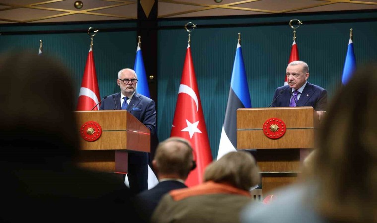 Cumhurbaşkanı Recep Tayyip Erdoğan, Beştepe’de Estonya Cumhurbaşkanı Alar Karis ile ortak basın toplantısı gerçekleştirdi. Karis ve heyetini Ankara’da misafir etmekten memnuniyet duyduğunu söyleyen Erdoğan, görüşmeleri vesilesiyle mevkidaşı Karis ile Türkiye Estonya ilişkilerini geliştirecek müşterek adımları ele aldıklarını belirtti. Estonya ile her alanda işbirliğini ilerletme potansiyeline sahip olunduğunu belirten Cumhurbaşkanı Erdoğan, iki ülke arasında 429 milyon dolara ulaşan ticaret hacmi ve karşılıklı yatırımların daha da artırabileceğine dikkat çekti.