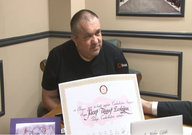 Cumhurbaşkanı Recep Tayyip Erdoğan'ın üç mazbatasına imzasını atan ve 21 yıldır hattatlık sanatını icra eden Zafer Çelebi, uzun yıllardır Erdoğan'ın yazılarını yazmasına rağmen onunla tanışamadığını belirterek, "Cumhurbaşkanı ile bir araya gelmek istiyorum, kendisiyle tanışmak istiyorum. İsmimi yazıp kendi fotoğrafıma bir de imza atarsa, bu benim için büyük bir onur olur" dedi.