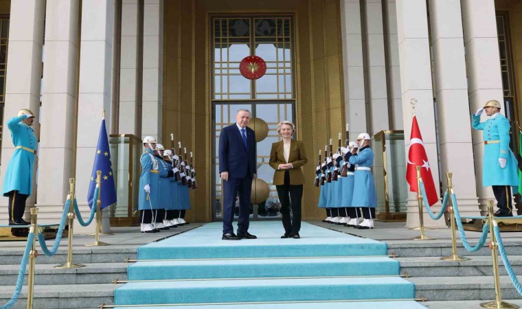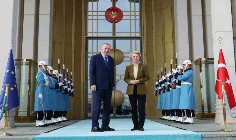 Cumhurbaşkanı Recep Tayyip Erdoğan, Cumhurbaşkanlığı Külliyesi’nde AB Komisyonu Başkanı Ursula Von Der Leyen’i kabul etti.