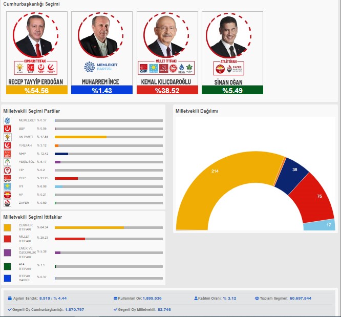 Cumhurbaşkanı ve 28. Dönem Milletvekilli seçimleri ilk sonuçları