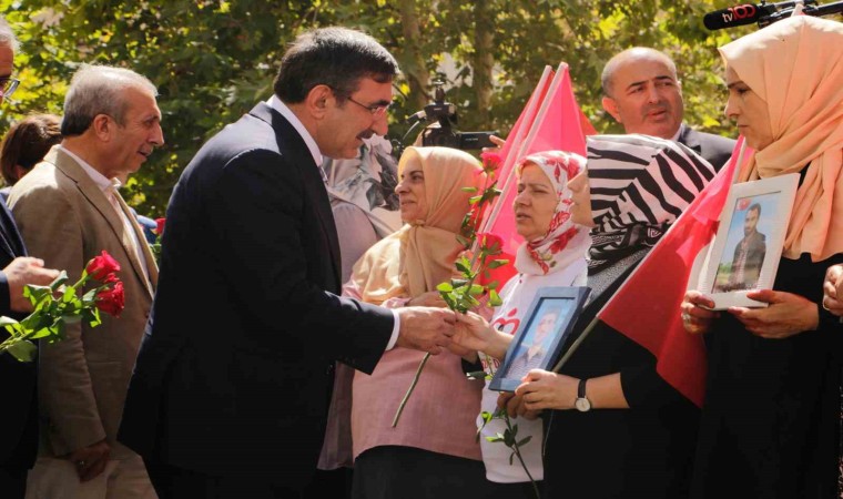 Diyarbakır’da evlat nöbetinde olan ailelerle bir araya gelen Cumhurbaşkanı Yardımcısı Cevdet Yılmaz, “Değerli kardeşlerim burada şu anda 365 aile var. Bunlar 370 çocukları için burada nöbetteler. 43 farklı şehirden aileler bulunuyor. Bu çabaların sonucu olarak bugüne kadar 45 anne, 45 aile evladına kavuştu. Bir tek insanın bile kurtulmasına vesile olmasına değer bu çabalar” dedi.