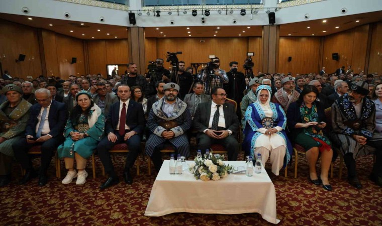Konuşmanın ardından Dünya Türkmenler Birliği, Cevdet Yılmaz’a hediye takdim etti.