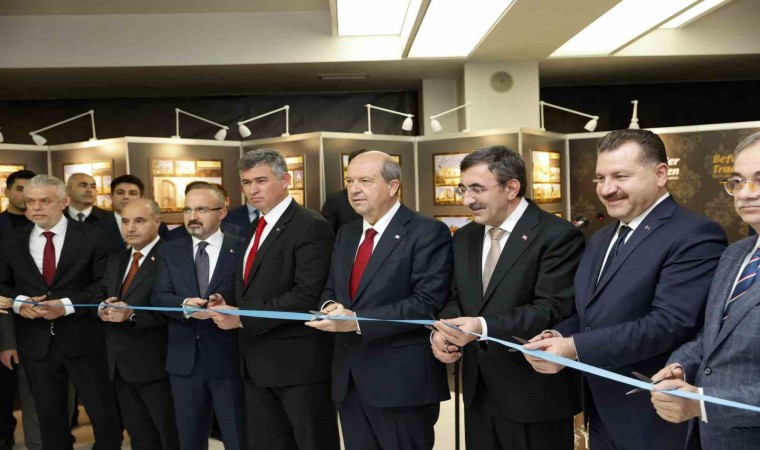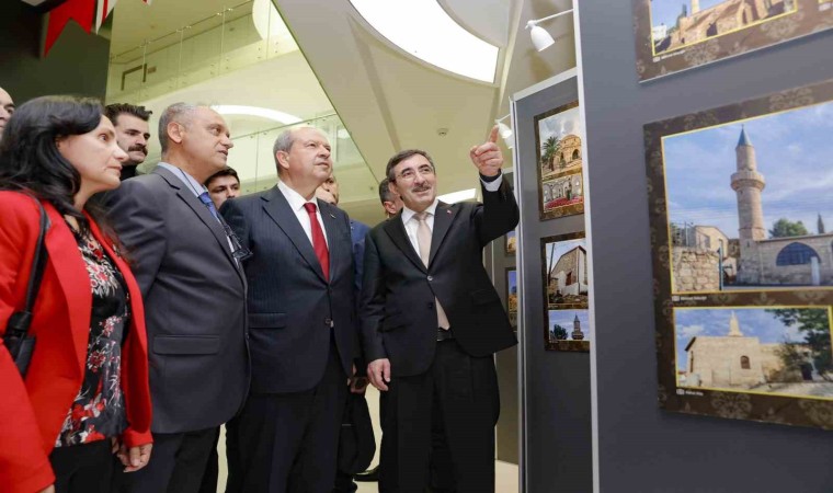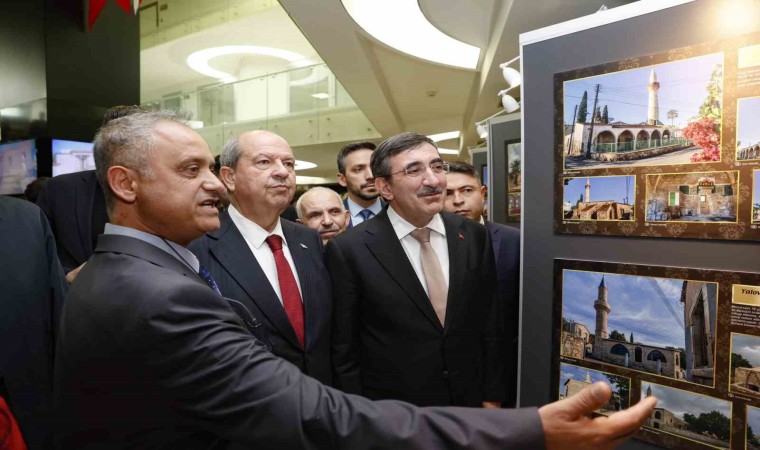 Konuşmasının ardından Cumhurbaşkanı Yardımcısı Cevdet Yılmaz, KKTC Cumhurbaşkanı Ersin Tatar ve beraberindeki kişiler, Güney Kıbrıs’ta kalan Osmanlı-Türk eserlerinin izlerinin silinmeden belgelenmesi amacıyla düzenlenen ve 127 esere ait fotoğraflar içeren sergiyi gezdi.