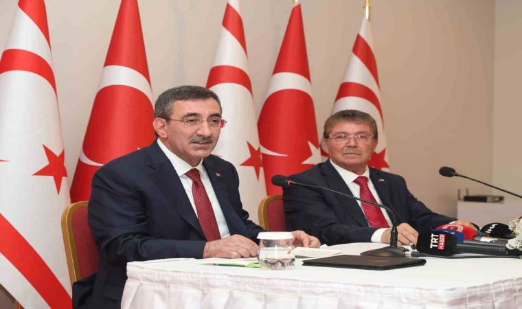 Cumhurbaşkanı Yardımcısı Cevdet Yılmaz, KKTC temasları çerçevesinde Başbakan Ünal Üstel ile basın toplantısı düzenledi. Cumhuriyet Bayramı vesilesiyle ve Cumhurbaşkanı Recep Tayyip Erdoğan’ı temsilen KKTC’de bulunmaktan büyük memnuniyet duyduğunu belirten Yılmaz, “Başta Cumhurbaşkanı Sayın Ersin Tatar ve Başbakan Sayın Ünal Üstel olmak üzere tüm Kıbrıs Türkü kardeşlerimizin Cumhuriyet Bayramı’nı kutluyorum. Bayramlar bizi birleştiren, ortak kaderimizi ve sevincimizi pekiştiren özel günlerdir. Kıbrıs Türk halkı ile sevincimiz ve neşemiz birdir. KKTC’nin bayramı bizim bayramımızdır. KKTC’nin kuruluşu bizler için de bir sevinç ve gurur kaynağıdır. 41 senedir Anavatan’daki kardeşleriniz sizler ile beraber bugünü kutluyor. Geçmişe bakıp Kıbrıs Türk halkının yaşadığı zorlukları düşündüğümüz zaman, KKTC’nin bugün gelmiş olduğu nokta hepimiz için iftihar vesilesidir” dedi.